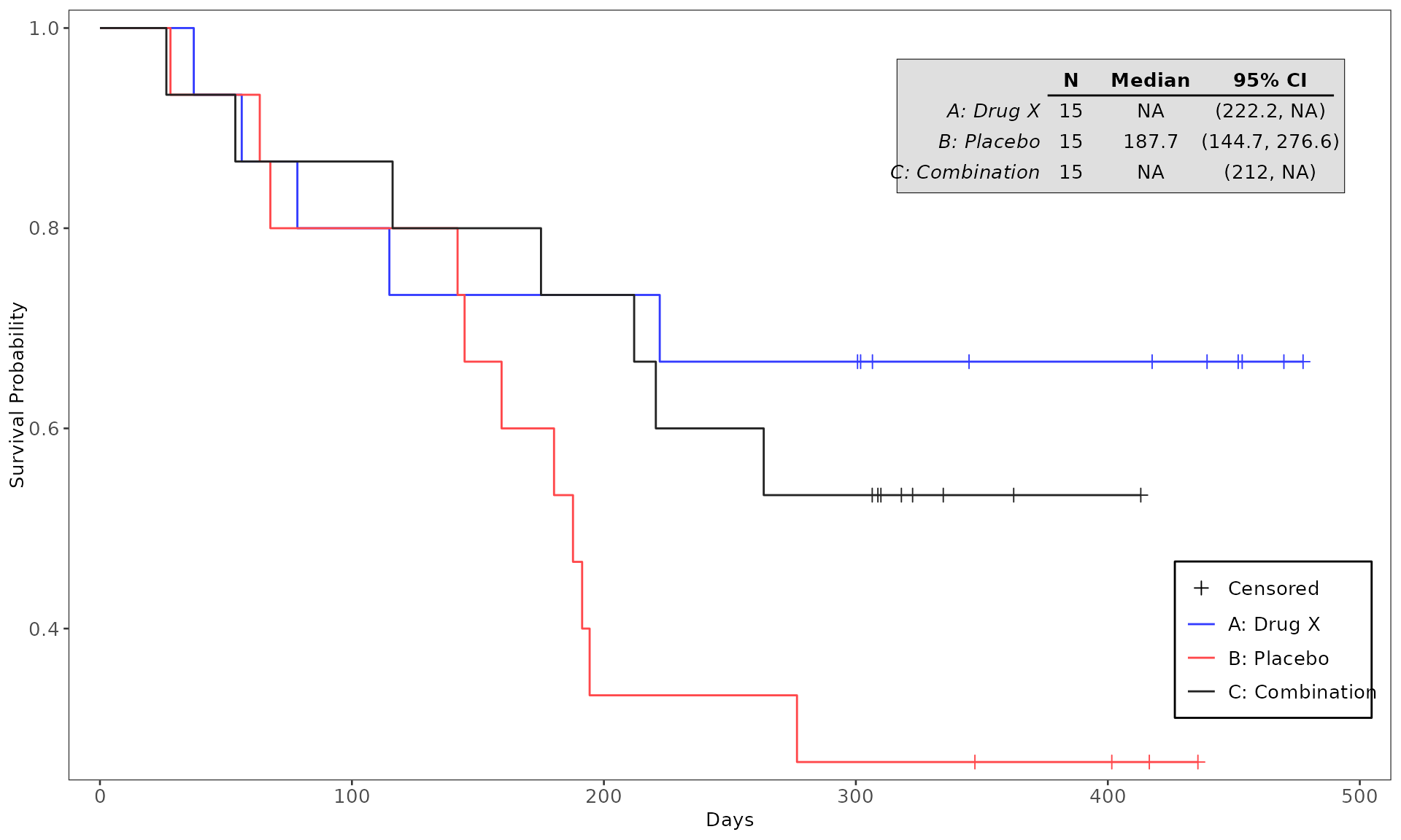 run(kmg01, proc_data, dataset = "adtte", censor_show = FALSE)