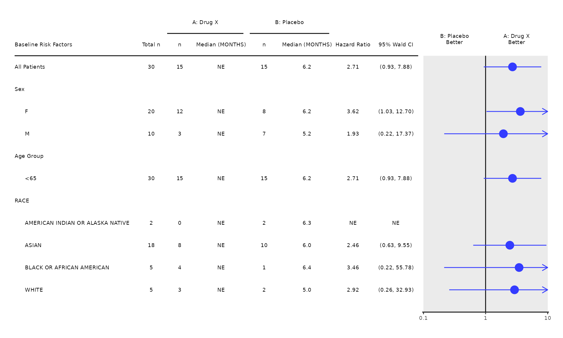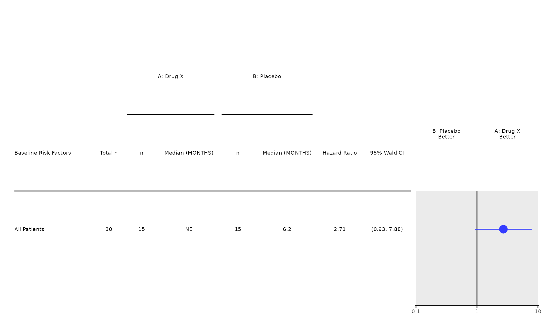 fstg02template produces the standard forest plot for hazard ratio. - Users are expected to subset the parameter of interest