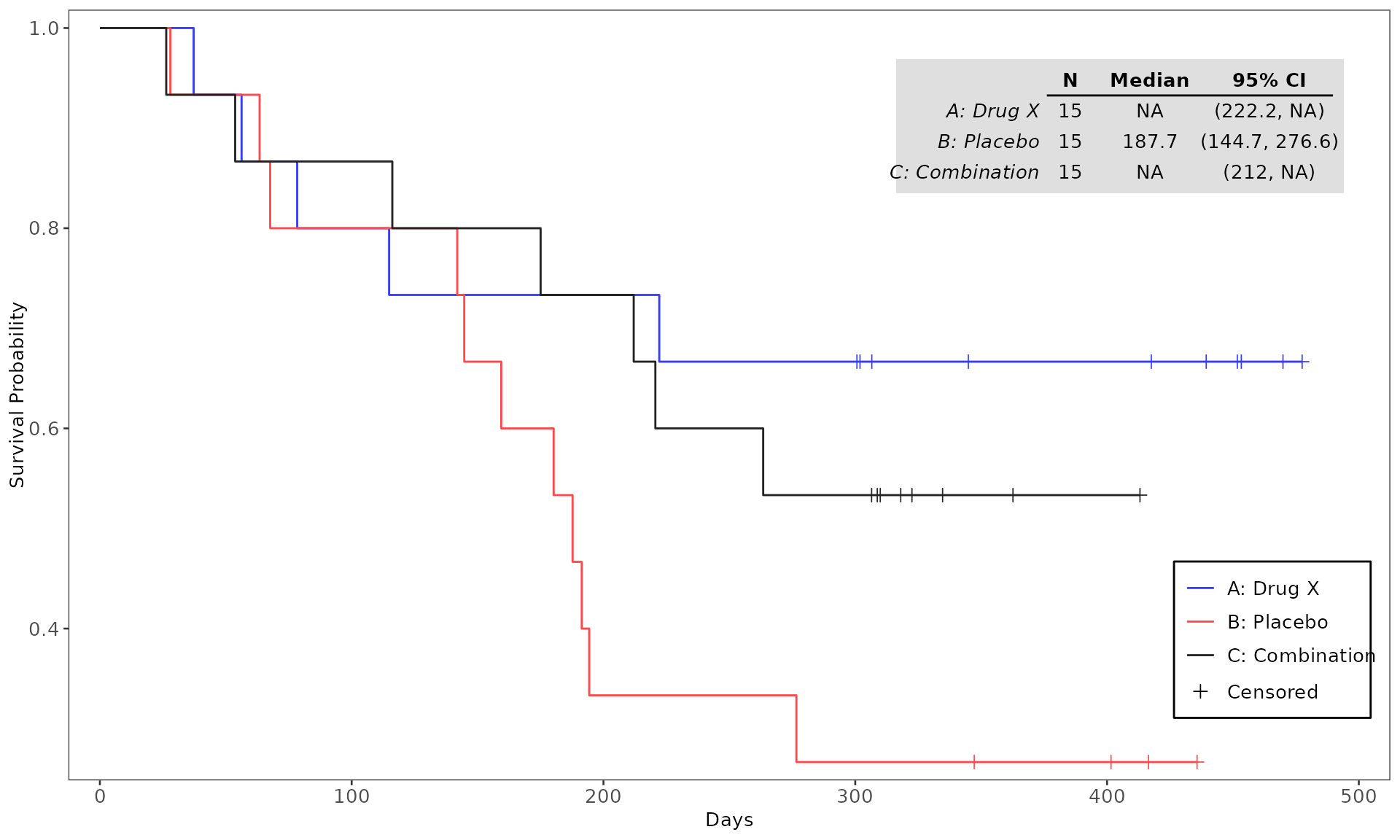 run(kmg01, proc_data, dataset = "adtte", censor_show = FALSE)