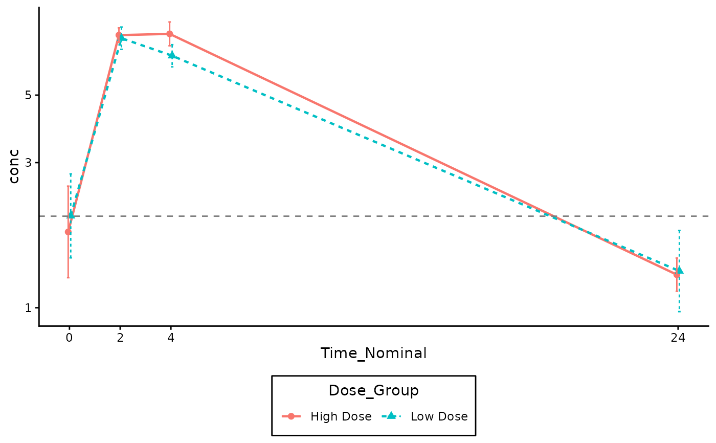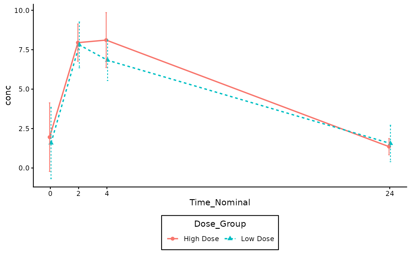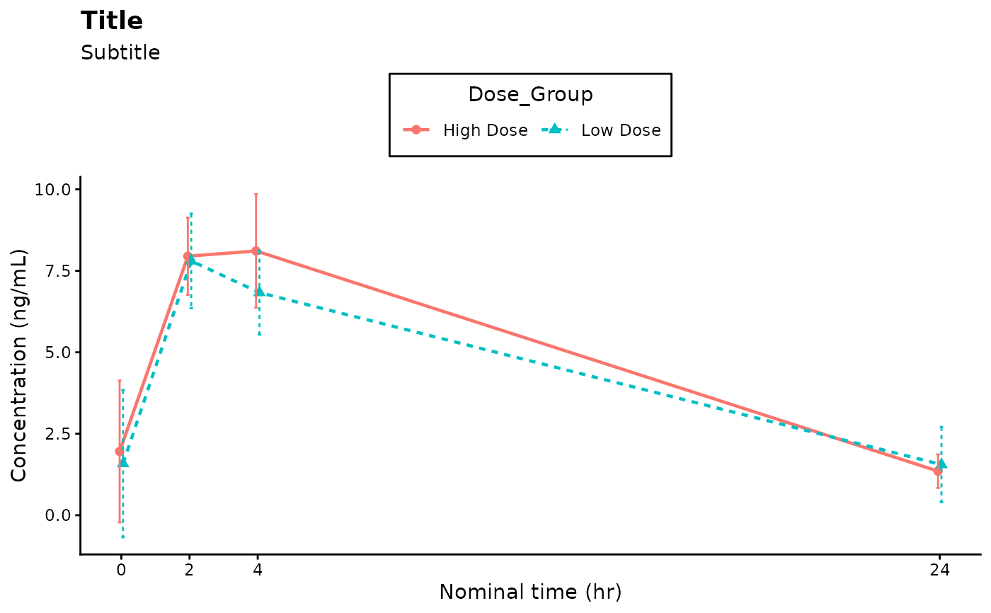 Creates a standard Pharmacokinetic (PK) concentration-time profile plot.