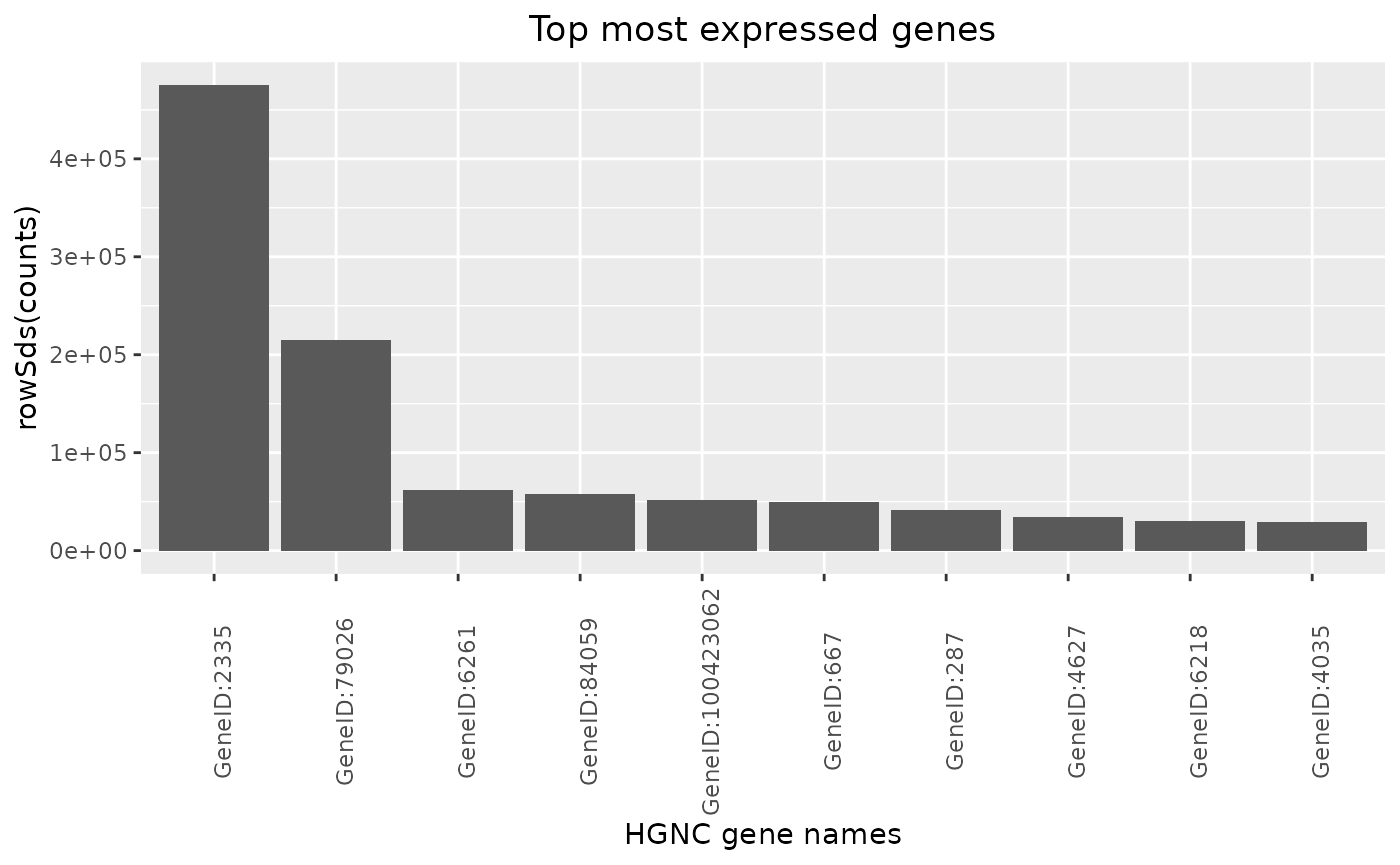 Note that in this case deprecated names were used for the rowData and colData variables, therefore they appear under “additional” gene and sample information. However we can still call the default constructor because the new names will be filled with missing values, e.g.: