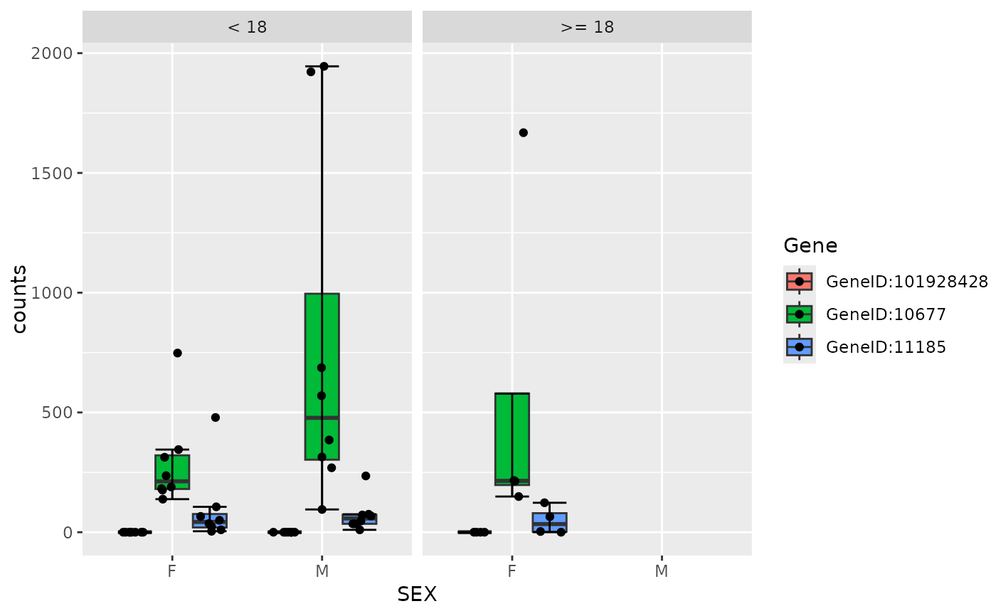 This produces boxplots of the gene expression values of a single gene, multiple genes or a gene signature.