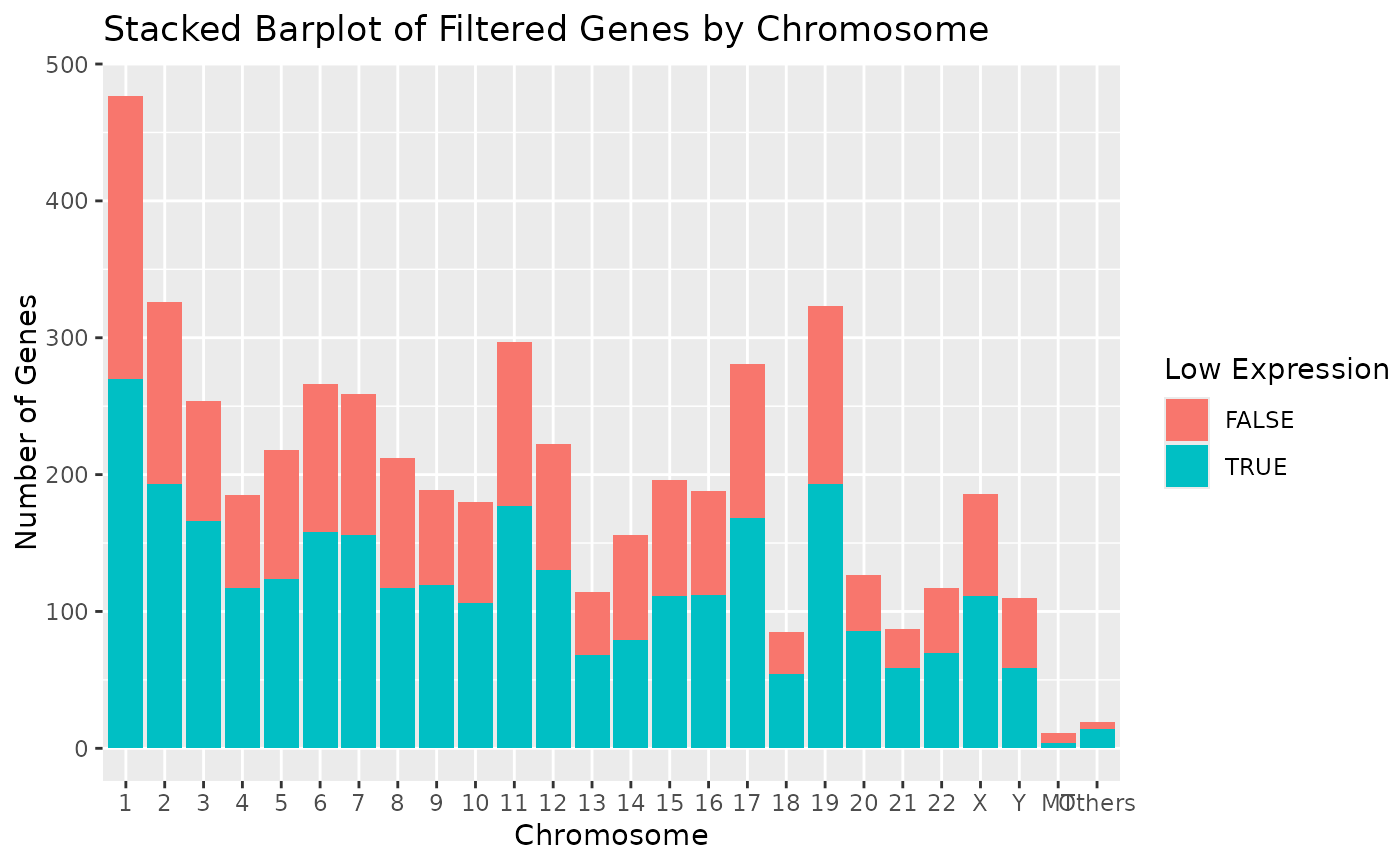 This generates all standard plots - histogram and q-q plot of library sizes, density plot of the (log) counts distributions, boxplot of the number of number of non-zero expressed genes per sample, and a stacked barplot of low expression genes by chromosome at default setting.