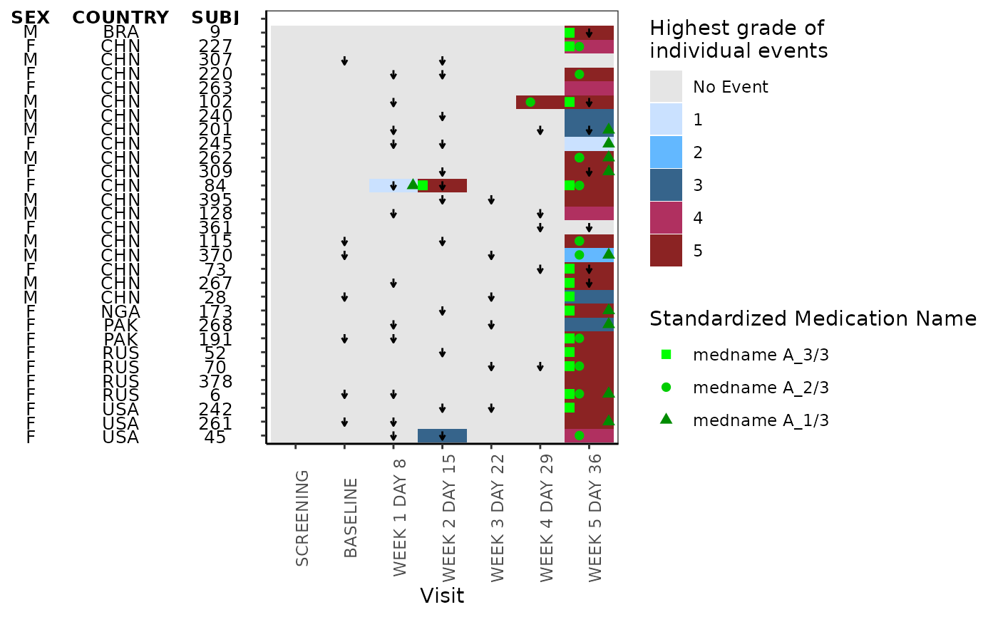concomitant medicine variable name. Must be a column name inconmed_datawhenconmed_datais provided. default isNULL(noconmedplotted)- conmed_color_opt