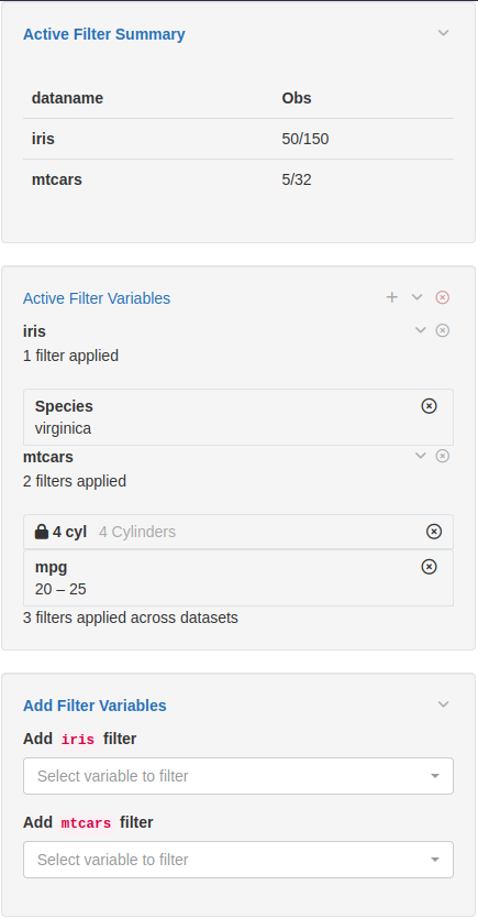 datasets <- init_filtered_data(list(iris = iris, mtcars = mtcars))