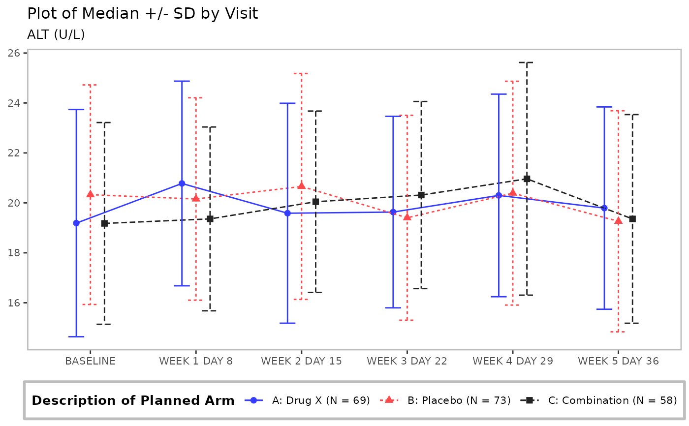 adlb <- tern_ex_adlb %>% dplyr::filter(ANL01FL == "Y", PARAMCD == "ALT", AVISIT != "SCREENING")