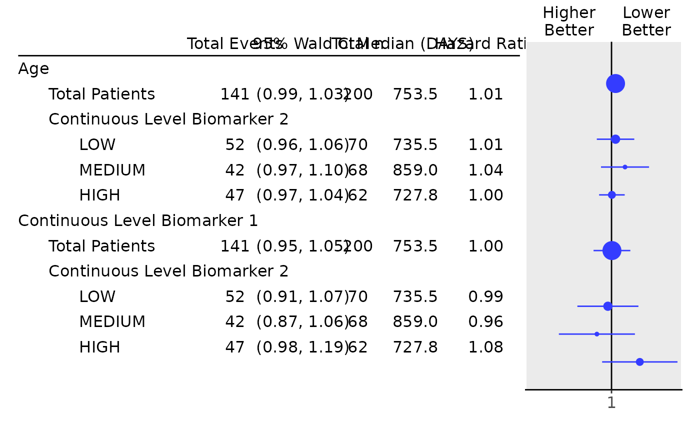 #> 3 Continuous Level Biomarker 2 analysis