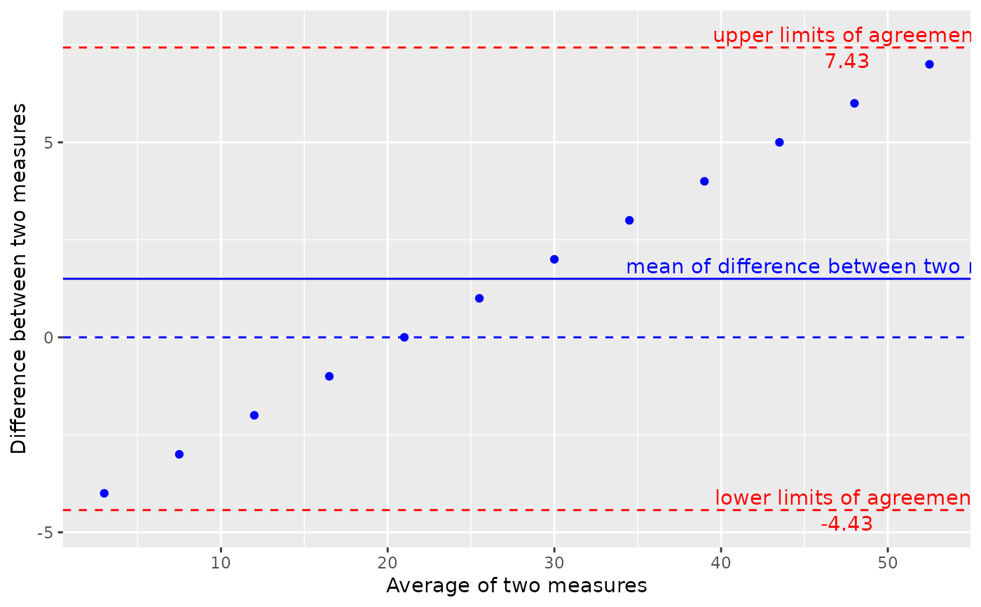 g_bland_altman(x = x, y = y, conf_level = 0.9)