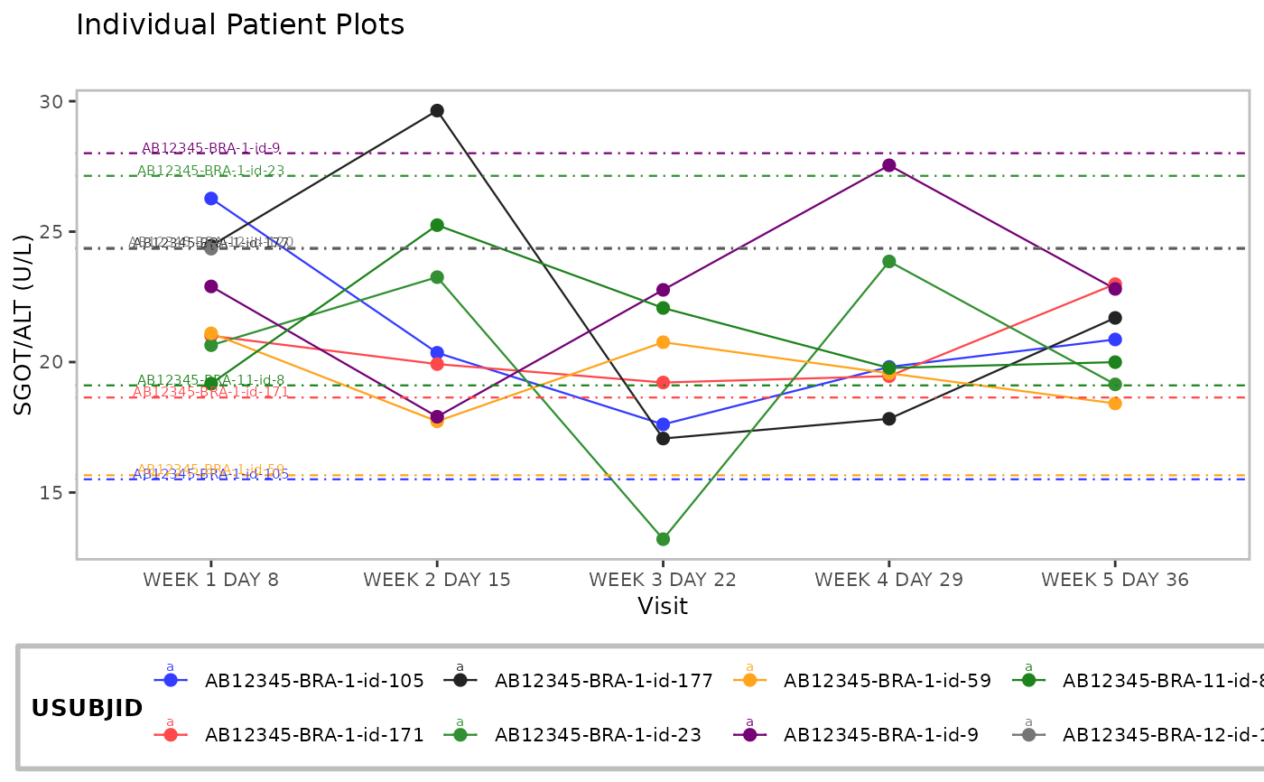 filter(PARAMCD == "ALT", !(AVISIT %in% c("SCREENING", "BASELINE"))) %>%